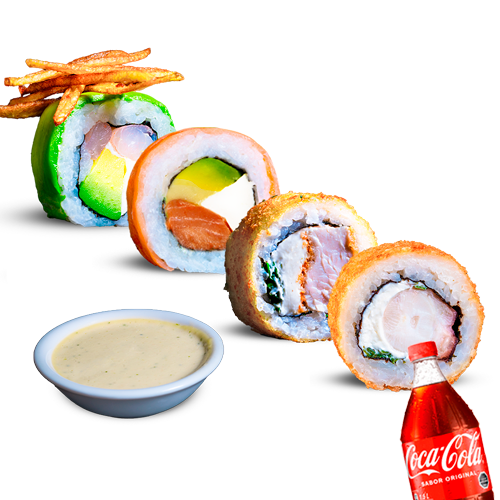 | 10 Ebi Special | Camarón, queso crema, palta, envuelto en palta |